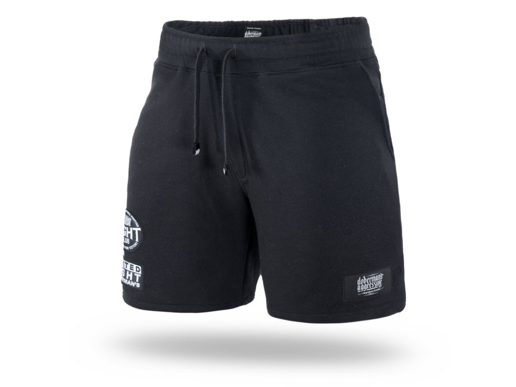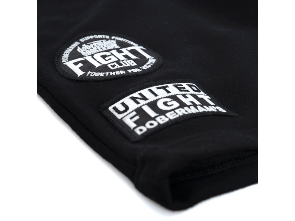 Na levé nohavici se nachází tkaná nášivka s logem Doberman’s Aggressive, na pravé nohavici 2 vyšívané nášivky sportovního charakteru: Doberman’s Fight Club a United Fight Doberman’s.