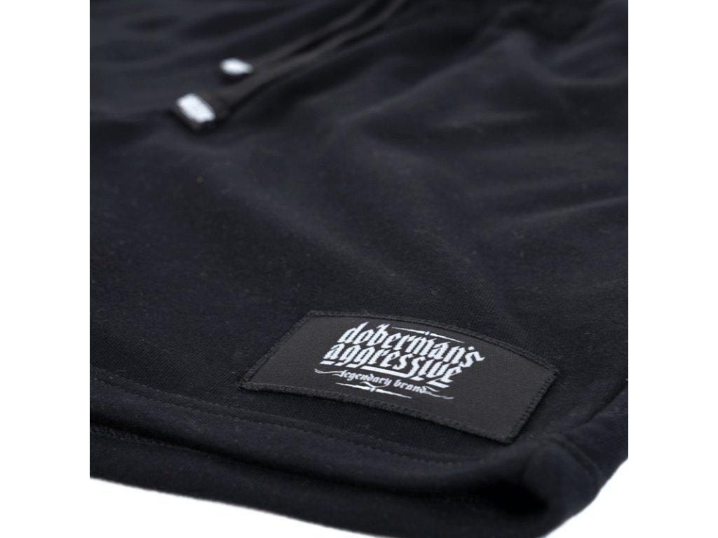 Horní část šortek je zakončená stahovacím lemem, který je možné volně nastavit pomocí šňůrek. Na obou koncích šňůrek je našitá malá cedulka Doberman’s Aggressive. Tento model má tři kapsy, dvě boční a jedna se nachází na zadní straně šortek.