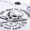 Vyrobené z vysoce kvalitní bavlny o hmotnosti 200g. Na levém rukávu je malá cedulka s logem značky. Tričko z limitované edice Colorful Skull je dostupné pouze v černé a bílé barvě. Na hrudi je velký vzor s lebkou a logem Doberman’s Aggressive. Zadní část je bez nápisu s malou miniaturou lebky na levé lopatce.