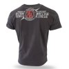 Má krátký rukáv. Výstřih je zakončený elastickým stahovacím lemem a zevnitř zpevněný plisováním. Na rukávu je černý štítek označený logem značky Doberman's Aggressive. Přední strana zdobená vzorem v podobě razítka. Uprostřed vzoru lebka s granátem, kolem heslo Nation Rebell, po stranách čísla: 44 a 99. Na zadní straně razítko s runovým motivem a nápis Powered By Nation Rebels. Dvojbarevný potisk, s viditelným efektem popraskání.