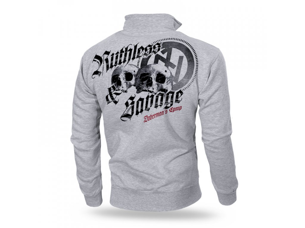 Model vyrobený z vysoce kvalitní bavlny o hmotnosti 320g. Na přední straně dvě praktické, našívané kapsy. Zadní strana mikiny je zdobená dvoubarevným potiskem, který zabírá značnou část povrchu výrobku. Vzor s efektem poničení, který zobrazuje dvě lebky a runový znak. Na přední straně levého ramene je vytištěný symbol z řady Offensive.