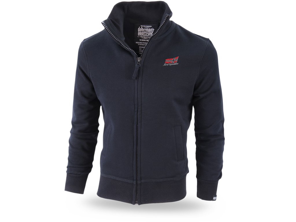 Vysoký límec skvěle chrání krk před chladem. Dolní část mikiny a rukávů je zakončená širokým stahovacím lemem. Uvnitř mikiny je velká cedulka s logem Dobermans Aggressive. Na zádech je velký potisk s několika postavami, které putují ve sněhu. Vzor navazuje na řadu Expedition a historické cesty. V pozadí je vidět vlající vlajka. Na přední straně na levé straně hrudi je norská vlajka a nápis Nord Expedition. Oblečení je vyrobeno z vysoce kvalitní bavlny o hmotnosti 200g.