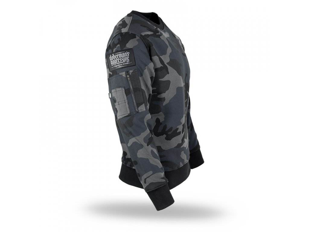 Na levém rukávu je našitá malá cedulka s logem značky. Dolní část mikiny a rukávů je zakončená širokým stahovacím lemem. Model s tkanou nášivkou s logem Doberman’s Aggressive na hrudi a na rameni.