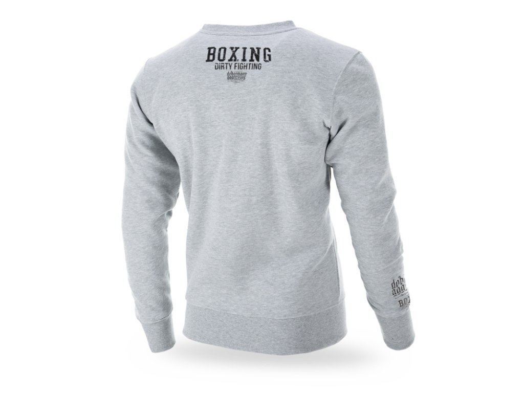 Vyrobena z vysoce kvalitní bavlny. Na levém rukávu je menší s logem značky Dobermans Aggressive. Na pravém rukávu je nad zápěstím potisk s logem značky a nápisem BOXING DIRTY FIGHTING. Na přední straně je nápis BOXING DIRTY FIGHTING a logo značky na pozadí sevřných boxerských pěstí. Zadní strana je bez nápisu, na krku miniatura vzoru, který se nachází na přední straně mikiny.