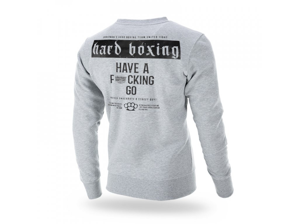 Vyrobená z vysoce kvalitní bavlny o hmotnosti 320g. Na levém rukávu je našitá malá cedulka s logem značky. Dolní část mikiny a rukávů je zakončená širokým stahovacím lemem. Model se silným vzkazem, na zadní straně mikiny vzor s nápisem Hard Boxing – Have A F*cking. Přední strana navazuje na hlavní motiv.