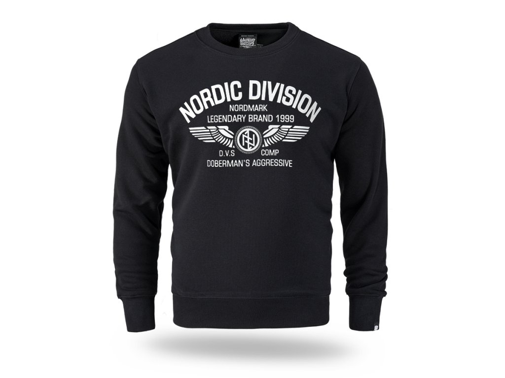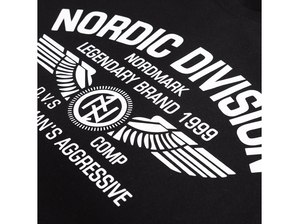 Model vyrobený v pohodlném klasickém střihu s kulatým výstřihem zakončeným elastickým nápletem. Na přední straně se nachází velký potisk s nápisem „Nordic Division – Nordmark Legendary Brand 1999“, doplněný grafickým motivem křídel a emblémem značky. Design je inspirován severskou a vojenskou estetikou a zdůrazňuje charakteristický a rozpoznatelný styl značky. Rukávy a spodní lem jsou zakončeny elastickými náplety, které zajišťují dobré přizpůsobení a pohodlí při nošení.