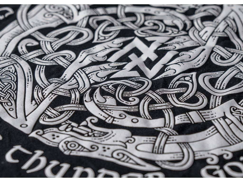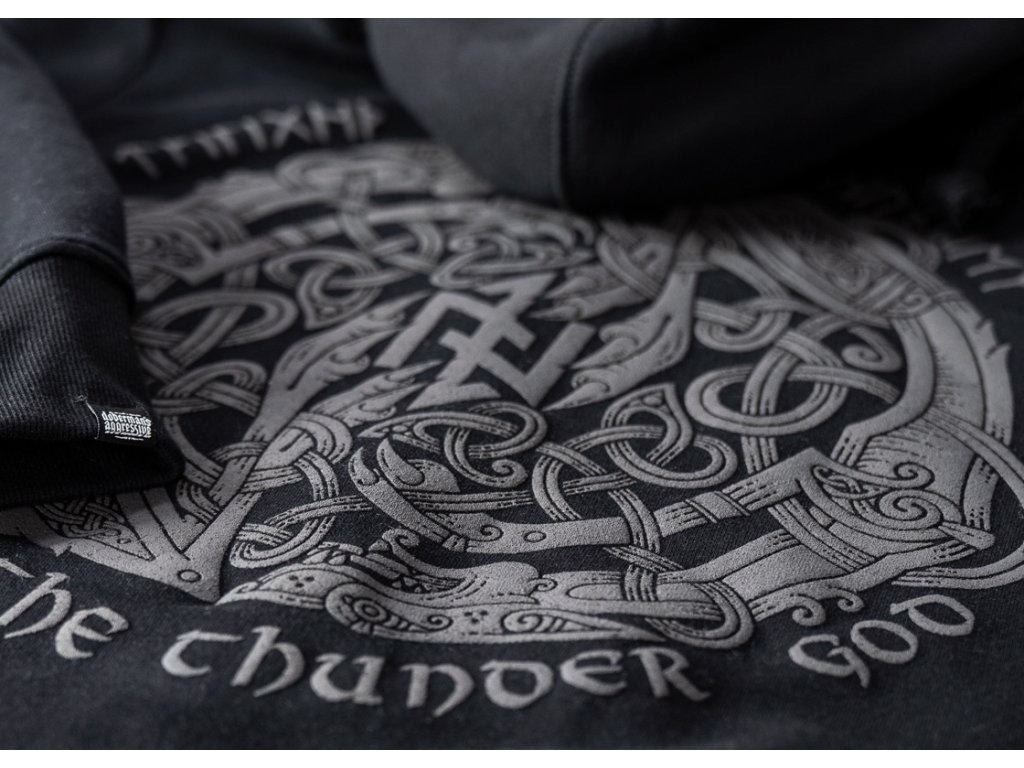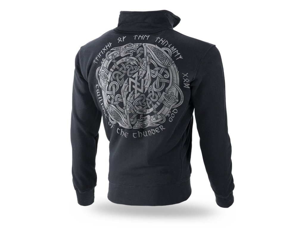 Vyrobená z vysoce kvalitní bavlny, zakončená stahovacími lemy, se dvěma kapsami na přední straně. Na levém rukávu je malá cedulka s logem značky. Mystical Circle je velký potisk v podobě 3D na zádech, který zobrazuje keltský kruh s vlkem a logem Doberman’s Aggressive, které jsou spojené do jednolitého vzoru. Přední část mikiny je zdobená runovým symbolem.