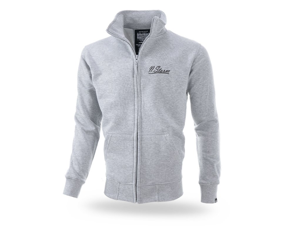 Mikina vyrobená z bavlny o hmotnosti 320g. Uvnitř červené lemování a velká, barevná cedulka se symbolem orla. Na hrudi nevelké logo N. Storm. Na zadní straně jednobarevný vzor ve skandinávském stylu – vzor s motivem drakaru plujícího po rozbouřeném moři a viditelným efektem popraskání potisku. Ve výšce lopatek jsou nápisy: Rising Storm a Legendary Nordic Brand. Pod vzorem je dvoubarevný štít v podobě vyšívané nášivky.