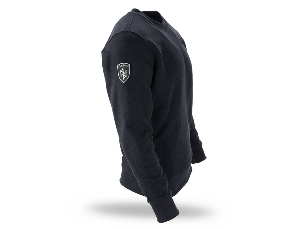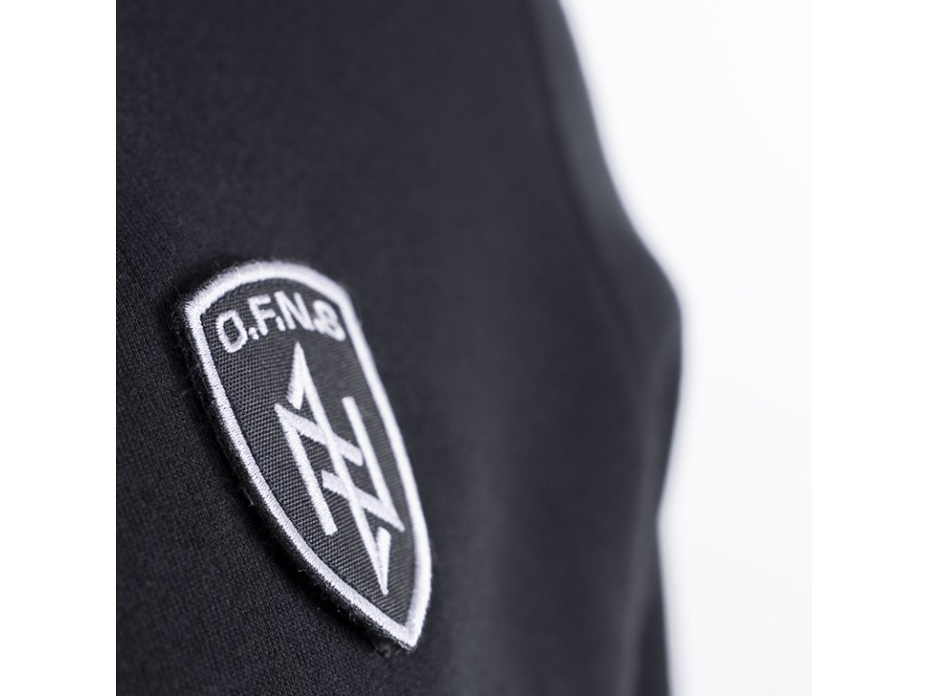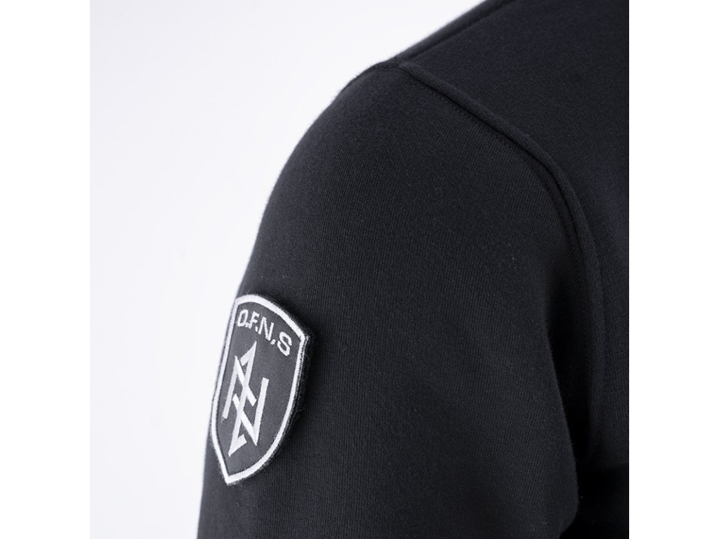Mikina je vyrobena z teplé a vysoce kvalitní bavlny. Na hrudi je suchým zipem připevněný štít s logem „O.F.N.S”. Dále na pravém rukávu mikiny se nachází druhý o něco větší štít ve stejném stylu k doplnění a zvýraznění charakteru mikiny z kolekce O.F.N.S SHIELD.
