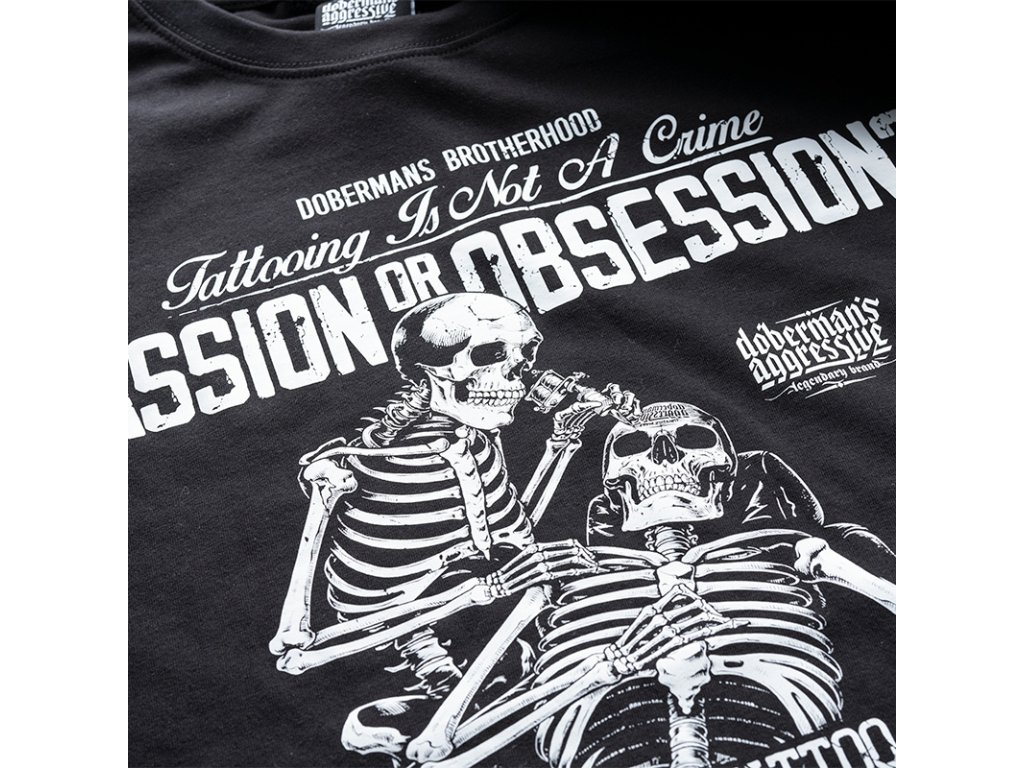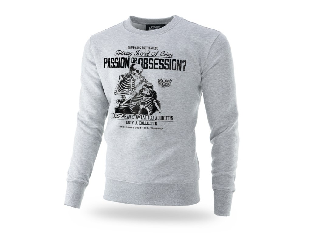 Vyrobená z vysoce kvalitní bavlny o hmotnosti 320g. Na levém rukávu je našitá malá cedulka s logem značky. Dolní část mikiny a rukávů je zakončená širokým stahovacím lemem. Model je určený pro milovníky tetování. Hlavní motiv tvoří vzor dvou kostlivců při vytváření tetování a nápis Passion Or Obsession?