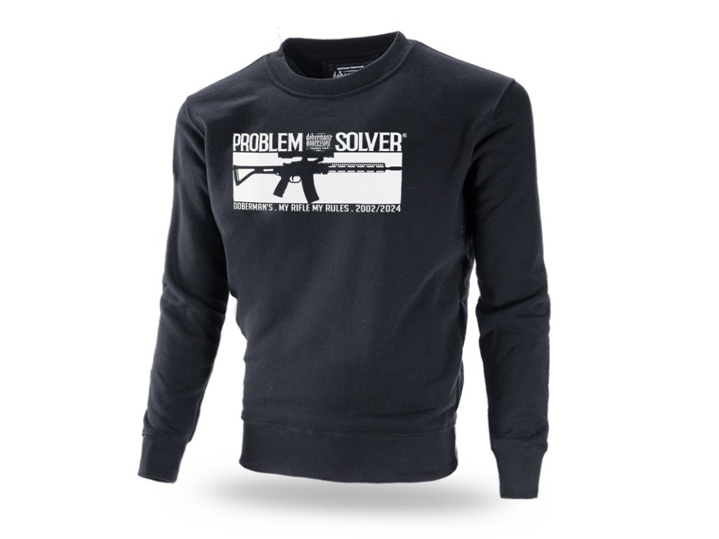 Vyrobená z vysoce kvalitní bavlny o hmotnosti 320g. Na levém rukávu je našitá malá cedulka s logem značky. Dolní část mikiny a rukávů je zakončená širokým stahovacím lemem. Na přední straně mikiny je vzor kulometu, dodatečně nápis PROBLEM SOLVER.