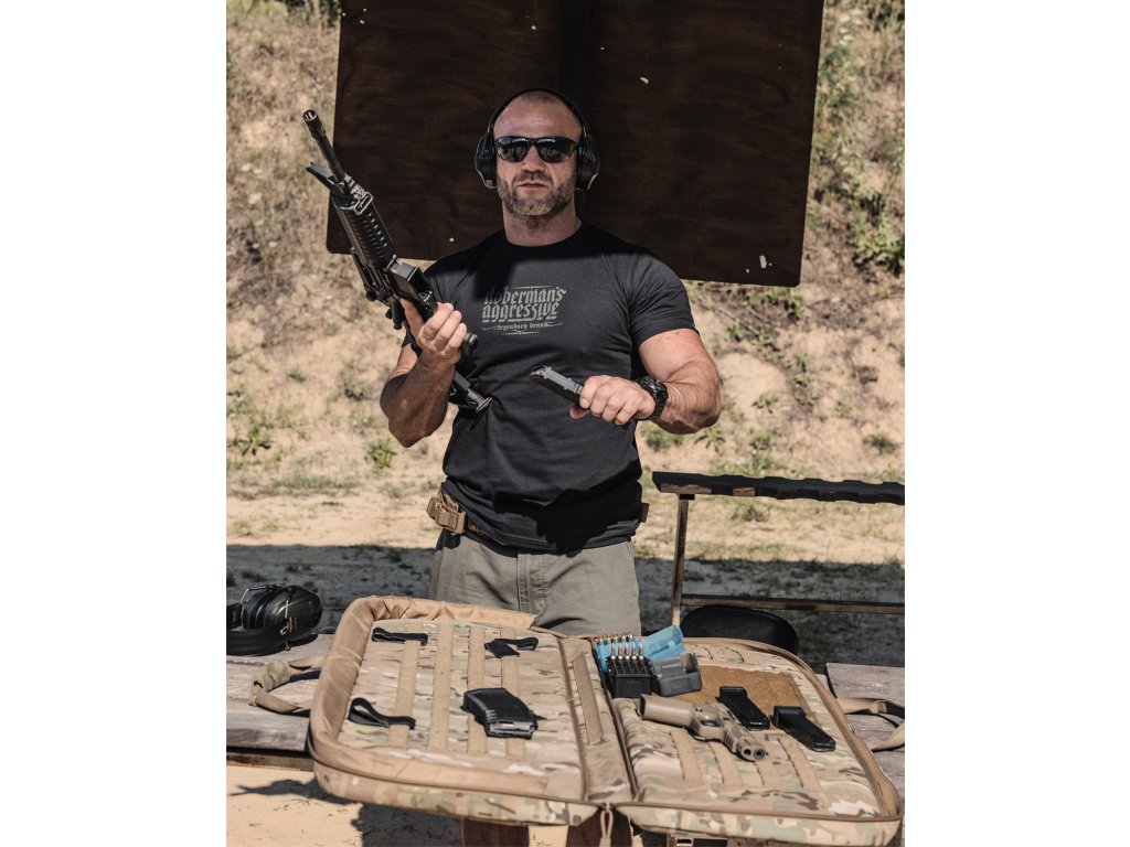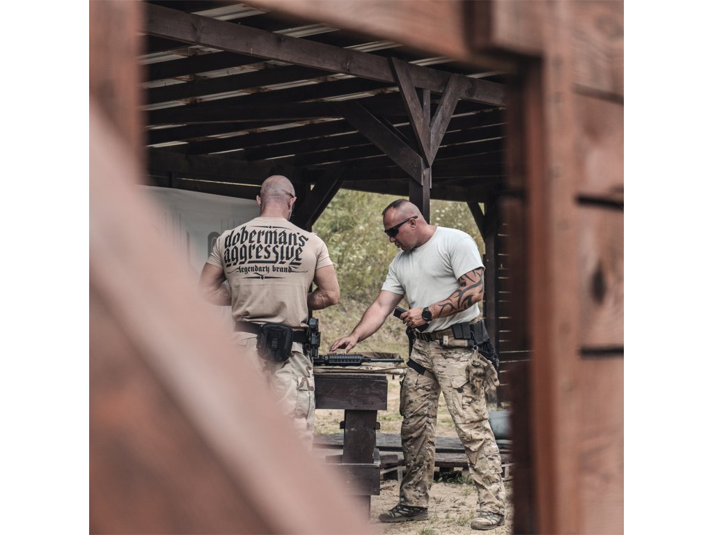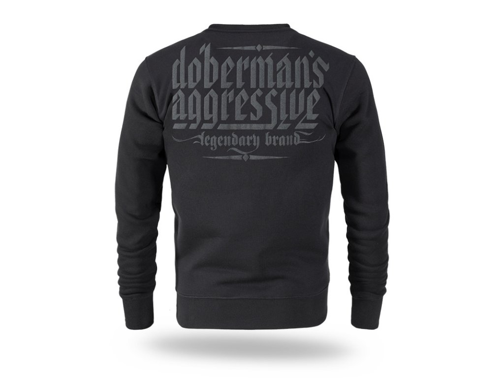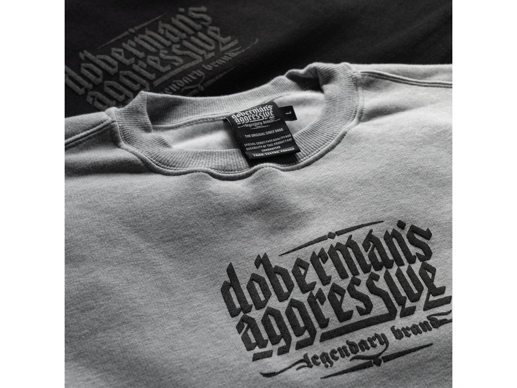 Na levém rukávu je našitá malá cedulka s logem značky. Dolní část mikiny a rukávů je zakončená širokým stahovacím lemem. Na přední i zadní straně mikiny se nachází logo značky vytvořené metodou vypouklého potisku. Zadní část je pokryta velkým logem Doberman’s a na přední straně je logo v menší velikosti.