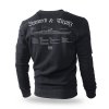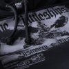 Na přední straně mikiny je vzor fotografie, která zobrazuje historické giganty z dob 2. světové války, uprostřed akce na volném moři. Dále je ozdobená nápisy v gotickém písmu a malým nákresem děl s krátkým popisem. Na zádech mikiny jsme umístili velký technický průřez plavidla s níže vypsanou specifikací. Nad ní je nápis Bismarck & Tirpitz a pod celkem je logo Doberman’s Aggressive.