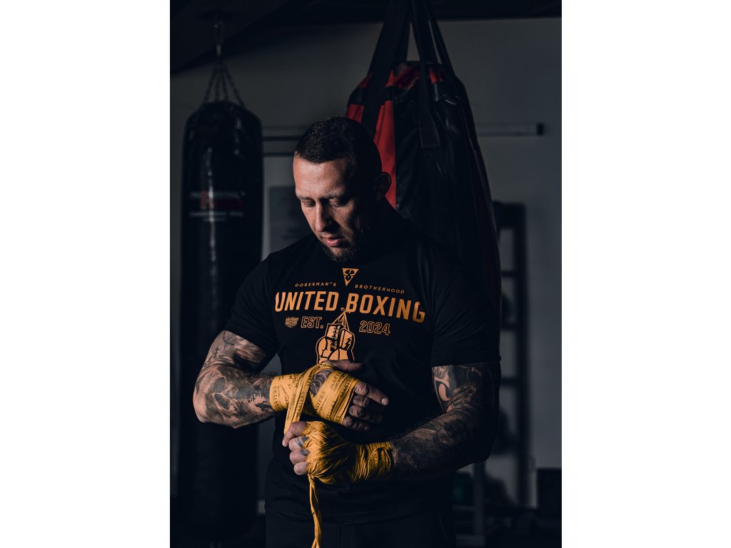 Vyrobená z vysoce kvalitní bavlny o hmotnosti 320g. Na levém rukávu je našitá malá cedulka s logem značky. Dolní část mikiny a rukávů je zakončená širokým stahovacím lemem. Na přední straně mikiny se nachází nápis UNITED BOXING v kombinaci se vzorem boxerských rukavic. Celek doplňují další menší grafické prvky.