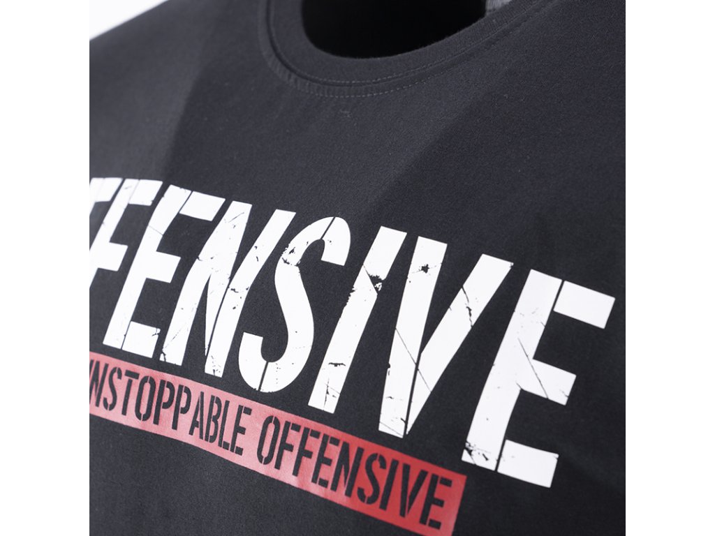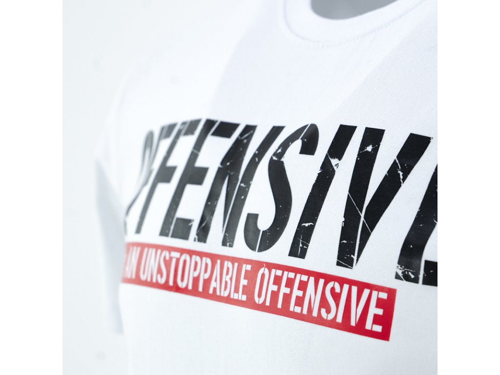 Po celé šířce hrudi je potisk „Offensive”, pod kterým se nachází nápis „An Unstoppable Offensive” na červeném pozadí. Dále na levém rukávu je velká červená cedulka, která přidává na neopakovatelnosti provedení a charakteru.