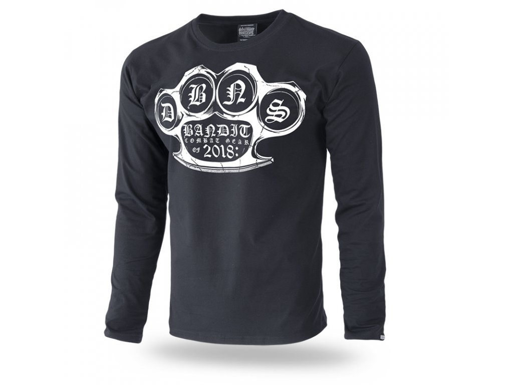 Na přední straně je velký, jednobarevný vzor inspirovaný bojovými sporty - vzor s boxerem, iniciály D.B.N.S. a nápisem Bandit Combat Gear of 2018. Použité písmo v gotickém stylu. Na krku nevelký nápis Bandit Team Doberman's Fight Gear. Tričko s dlouhým rukávem je vyrobeno z vysoce kvalitní bavlněné látky o hmotnosti 200g.