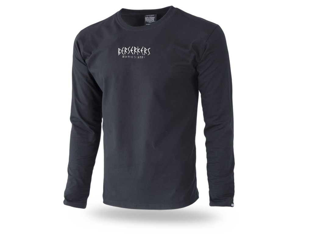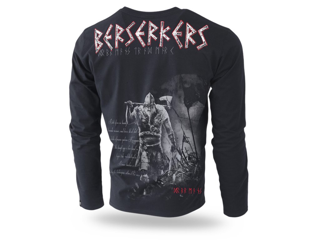 Tkanina s velkou gramáži (200g), standardní střih se stahovacím lemem u krku. Na hrudníku název série a runové symboly. V horní části na zádech velký barevný nápis Berserkers, pod ním grafika s vlajkou a postavou Vikinga –bojovníka, který nese sekyru. Viditelný efekt rozpraskání.