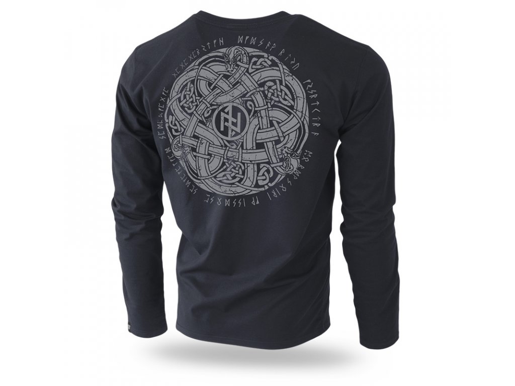 Složení 100% bavlny. Červené prvky v podobě vnitřního lemování a boční cedulky s logem značky. Na zádech jednobarevný potisk zabírající značný povrch látky. Vzor zobrazuje keltské uzly s motivy severských draků. Dokola runové znaky. Stejný prvek vytištěný na levé straně hrudi v menší velikosti.