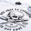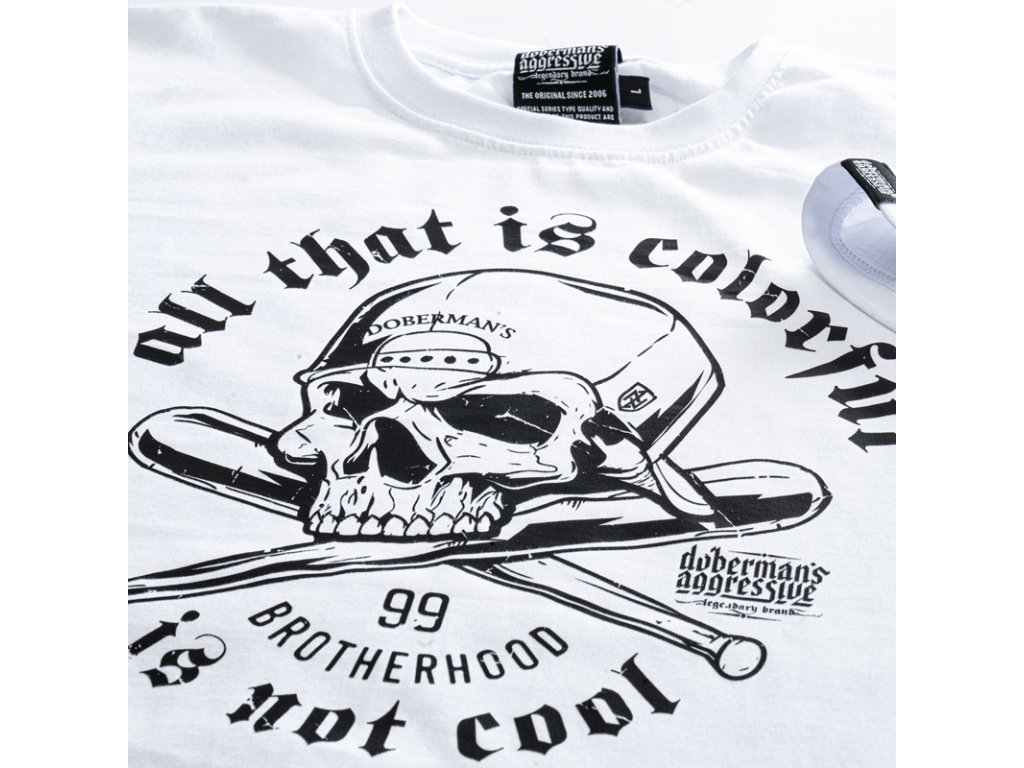 Na levém rukávu je malá cedulka s logem značky. Tričko z limitované edice Colorful Skull je dostupné pouze v černé a bílé barvě. Na hrudi je velký vzor s lebkou a logem Doberman’s Aggressive. Zadní část je bez nápisu s malou miniaturou lebky na levé lopatce.