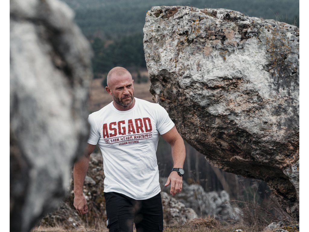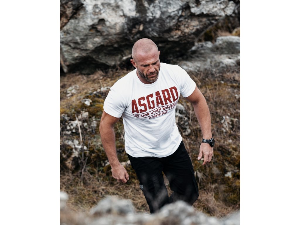 Vyrobeno z bavlny o vysoké hmotnosti. Na levém rukávu je našitá malá cedulka s logem značky. Model s velkým nápisem ASGARD vytvořený technikou vypouklého potisku a menším runovým nápisem.