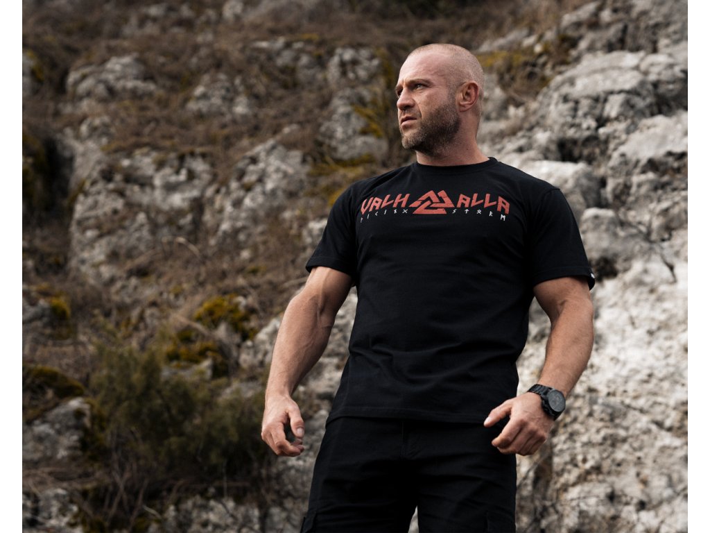 Vyrobeno z bavlny o vysoké hmotnosti. Na levém rukávu je našitá malá cedulka s logem značky. Na přední straně tílka se nachází nápis Valhalla vytvořený vypouklým potiskem. Vzor doplňuje severský symbol.
