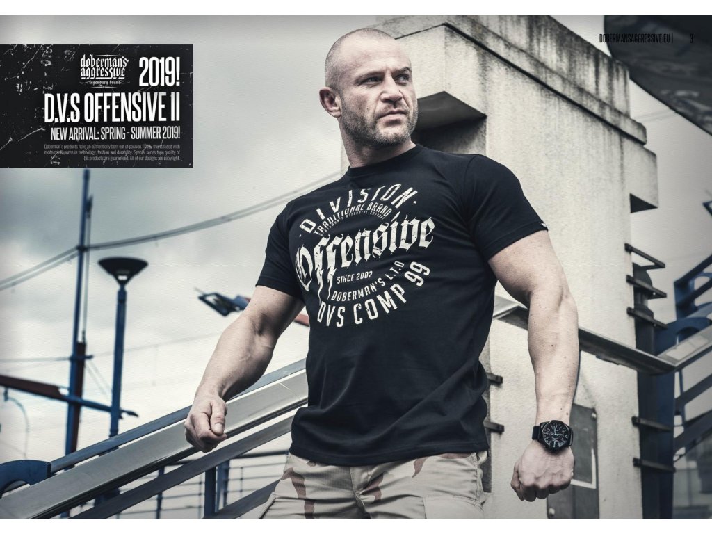 Na levém rukávu je malá cedulka s logem Dobermans Aggressive. Na krku je malý vzor se dvěma blesky. Na hrudi je nápis Offensive, výše Division. Kolem něho jsou jiná hesla ve formě kruhu. Použitý efekt popraskání potisku.