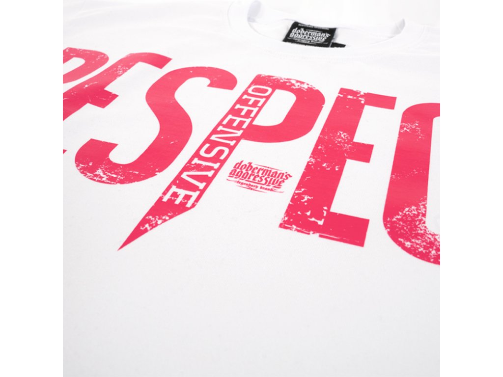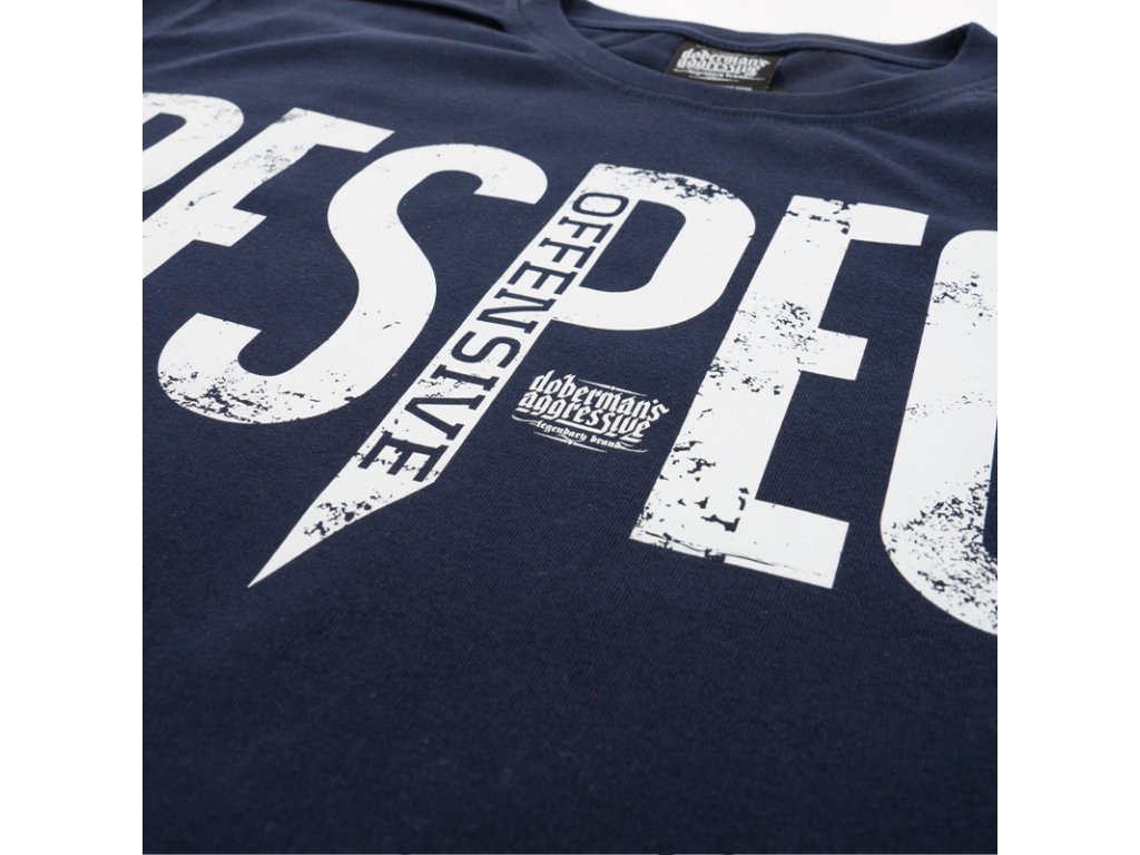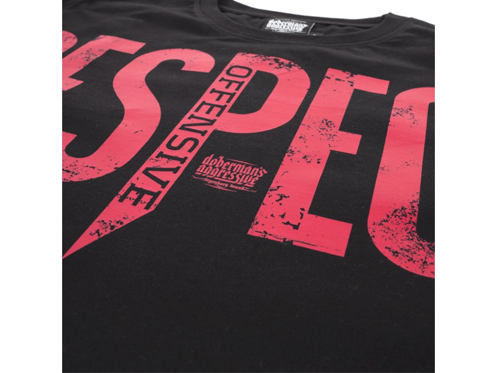 Vyrobeno z vysoce kvalitní bavlny. Na levém rukávu je našitá malá cedulka s logem značky. Na přední straně se nachází velký nápis RESPECT, navíc do písmena P byl vložen menší nápis OFFENSIVE. Celek vzoru uzavírá malé logo značky Doberman’s.