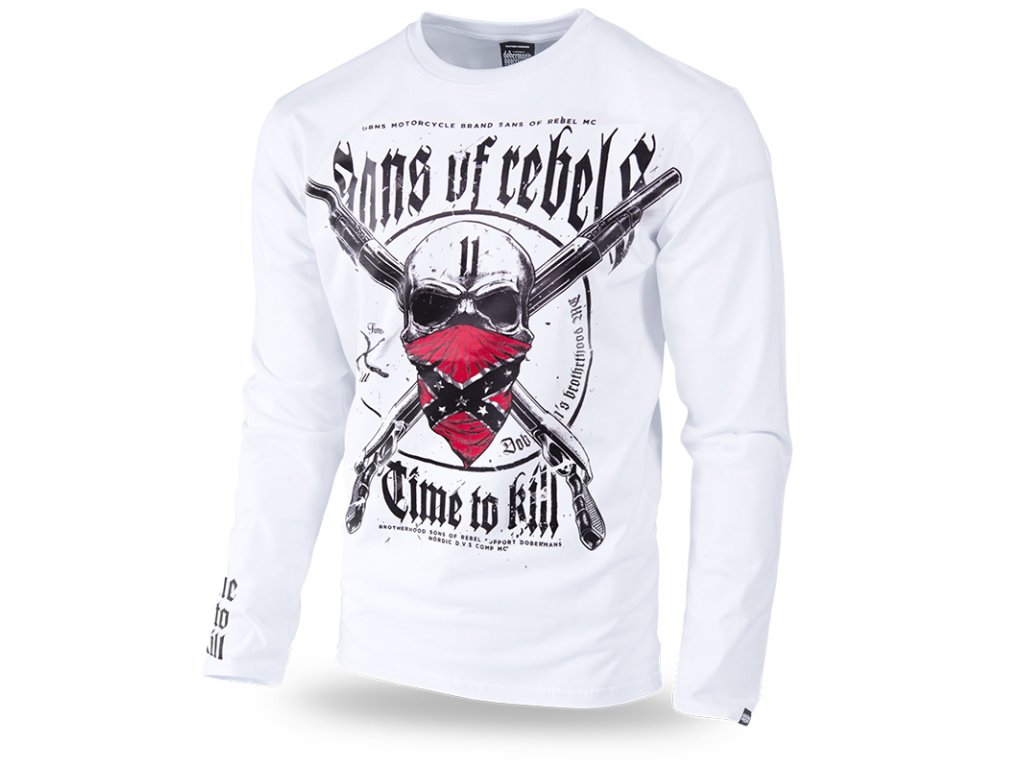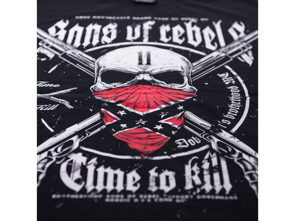 Longsleeve z řady SONS OF REBEL, vzor se nachází na zádech. Jedná se o dvě zkřížené brokovnice a uprostřed nich je velká lebka s konfederačním šátkem, který zakrývá lebku. Kolem ní jsou nápisy v gotickém stylu, které přitahují pozornost, a na přední straně levé hrudi je heslo Time to Kill a logo značky.