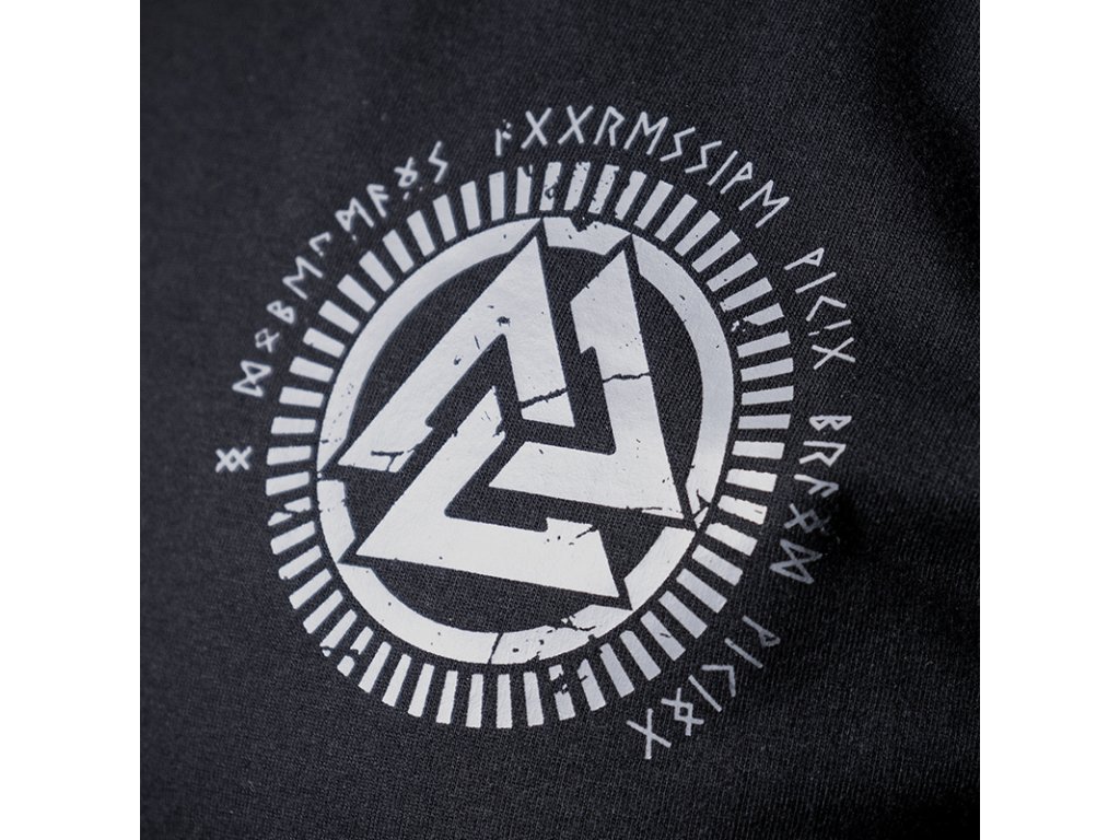 U krku je zakončené nevelkým stahovacím lemem, který zlepšuje pohodlí nošení. Cedulka s logem Dobermans Aggressive našitá na levém rukávu. Na pravém rukávu je vyšitý runový znak Valknut, spojený se severskou mytologií, který označuje padlé s mečem v ruce. Na levé straně hrudi je symbol Valknut v podobě potisku s efektem poničení. Na zádech je velký nápis v gotickém stylu a rozzuřený vlk s otevřenou tlamou.
