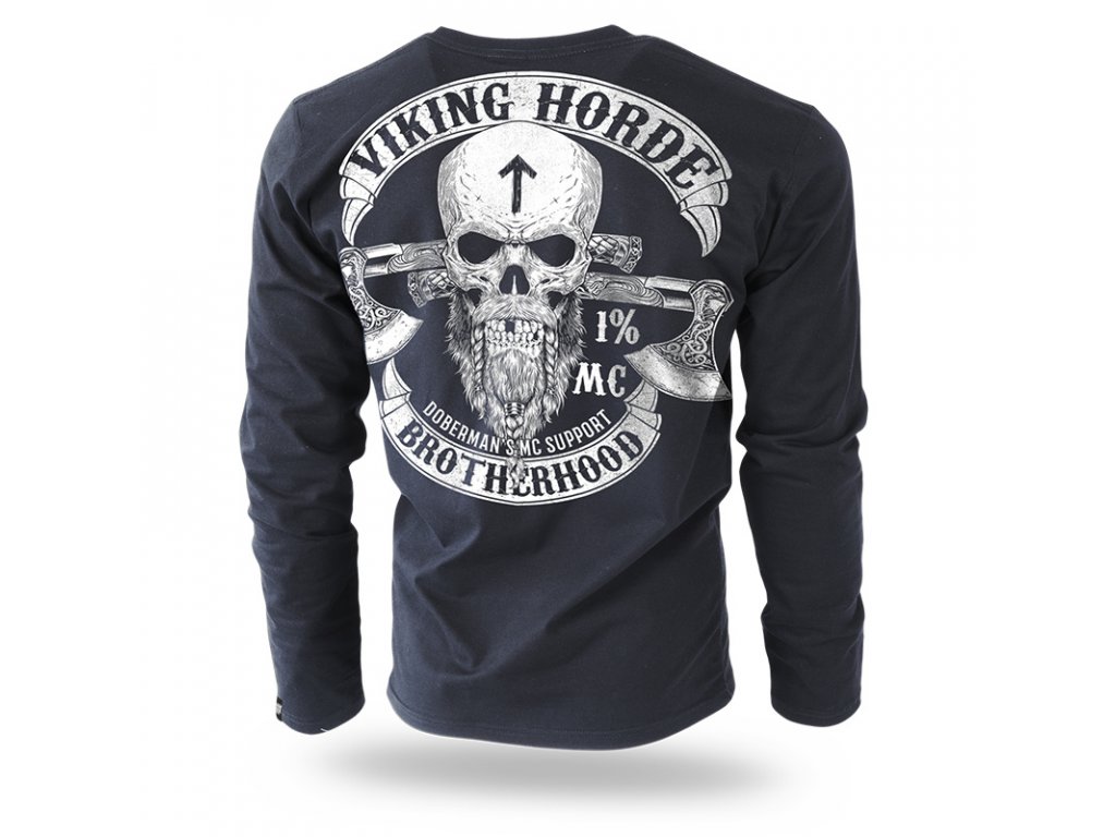 Uvnitř se nachází tkaná cedulka s firemním logem. V dolní části levého rukávu je štítek. Na levé straně hrudi se nachází potisk se třemi lebkami Vikingů. Záda jsou pokrytá vzorem se dvěma prapory. Na nich se nachází dva nápisy - Wiking Horde a Brotherhood. Uprostřed vzoru je vidět velká lebka s runovým symbolem. Za ní jsou dvě sekery. Potisk v jedné barvě.
