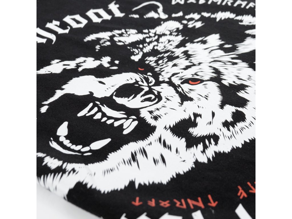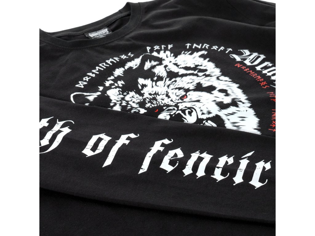 Vyrobeno z vysoce kvalitní bavlny. Na pravém rukávu je potisk se svislým nápisem gotickým písmem Wrath of fenrir. Levý rukáv s našitou malou cedulkou Doberman’s Aggressive. Na přední straně dvojbarevný vzor hrozivého vlka. Kolem jsou nápisy vytvořené gotickým písmem a také runové symboly a logo značky.