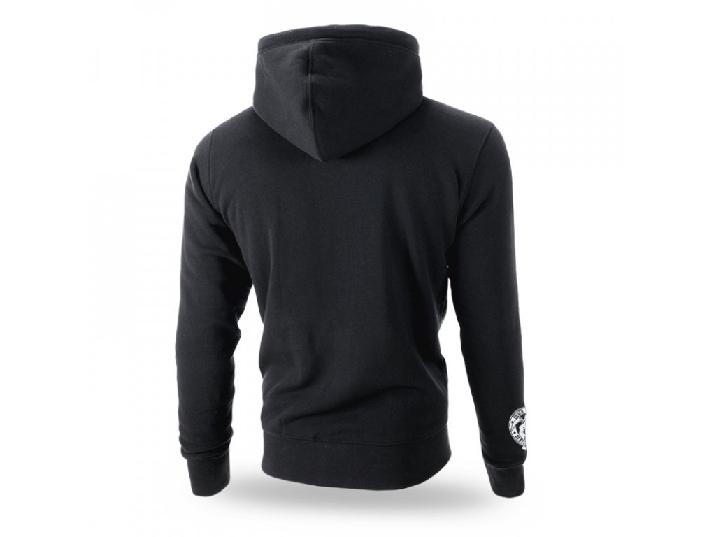 Klokanka z vysoce kvalitní bavlny, zakončená pevnými šňůrkami u krku, s kovovými zakončeními a všitou kapsou na břichu.