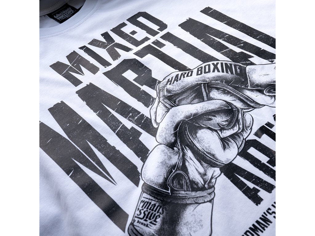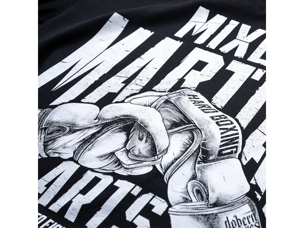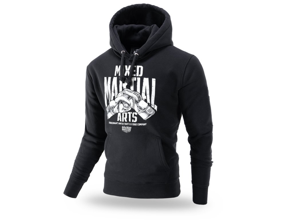 Dolní část mikiny a rukávy jsou zakončené širokým stahovacím lemem. Na levém rukávu je umístěná malá cedulka s logem značky. Na přední straně mikiny je velký nápis Mixed Martial Arts s vkomponovanými rukavicemi MMA. Model doporučujeme hlavně milovníkům bojových umění.