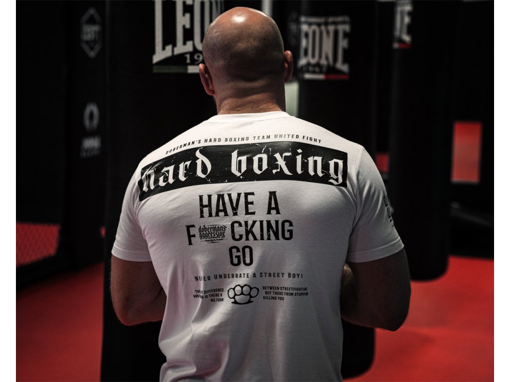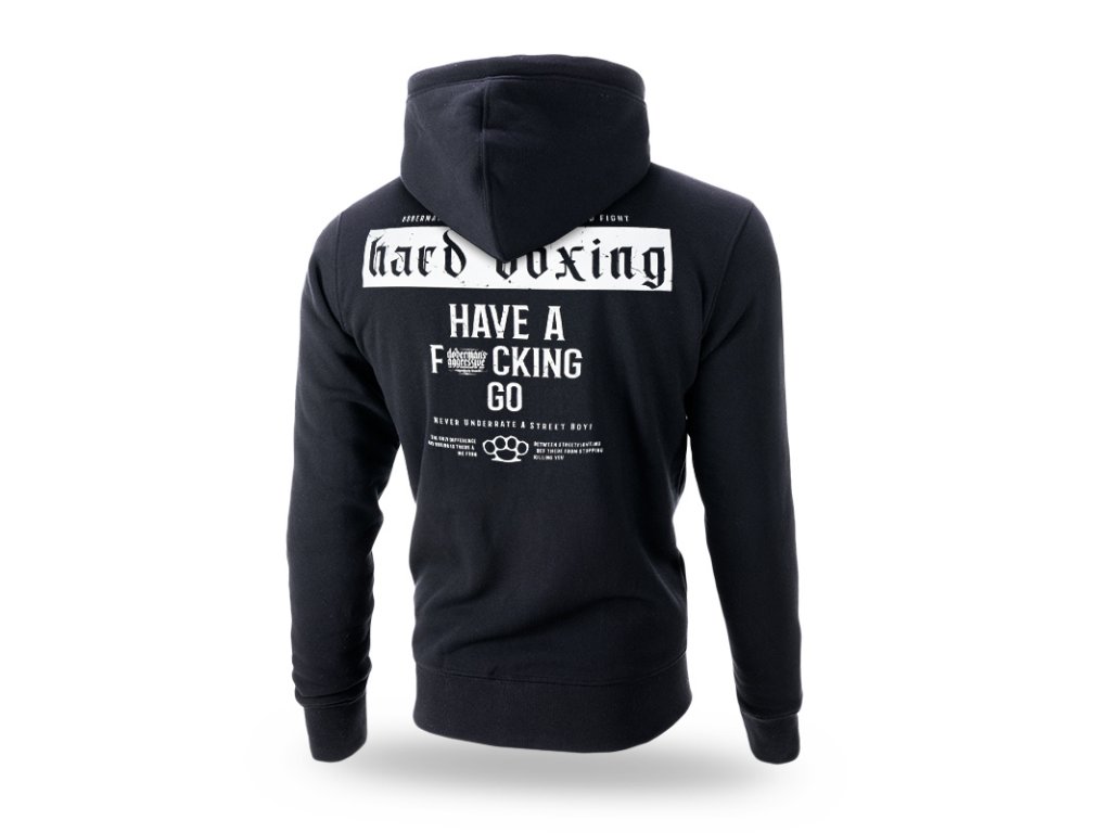 Vyrobená z vysoce kvalitní bavlny, má dvě kapsy na přední straně, zakončená stahovacími lemy. Na levém rukávu je malá cedulka s logem značky. Kapuce je ozdobená pevnou šňůrkou a kovovými zakončeními s logem značky. Model se silným vzkazem, na zadní straně mikiny vzor s nápisem Hard Boxing – Have A F*cking. Přední strana navazuje na hlavní motiv.