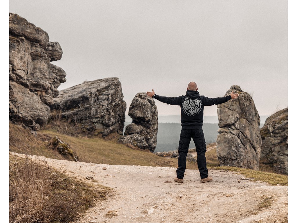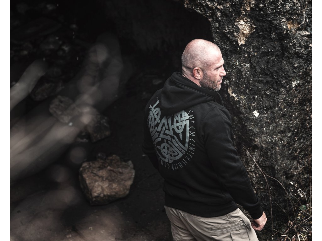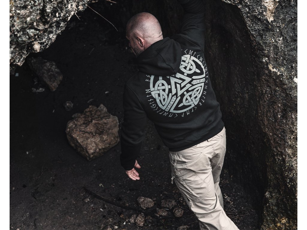 Vyrobená z vysoce kvalitní bavlny, má dvě kapsy na přední straně, zakončená stahovacími lemy. Na levém rukávu je malá cedulka s logem značky. Kapuce je ozdobená pevnou šňůrkou a kovovými zakončeními s logem značky. Na přední straně mikiny se nachází malá vyšívaná nášivka se severským symbolem. Zadní stranu mikiny zdobí velký potisk v severském stylu vytvořený metodou vypouklého potisku.