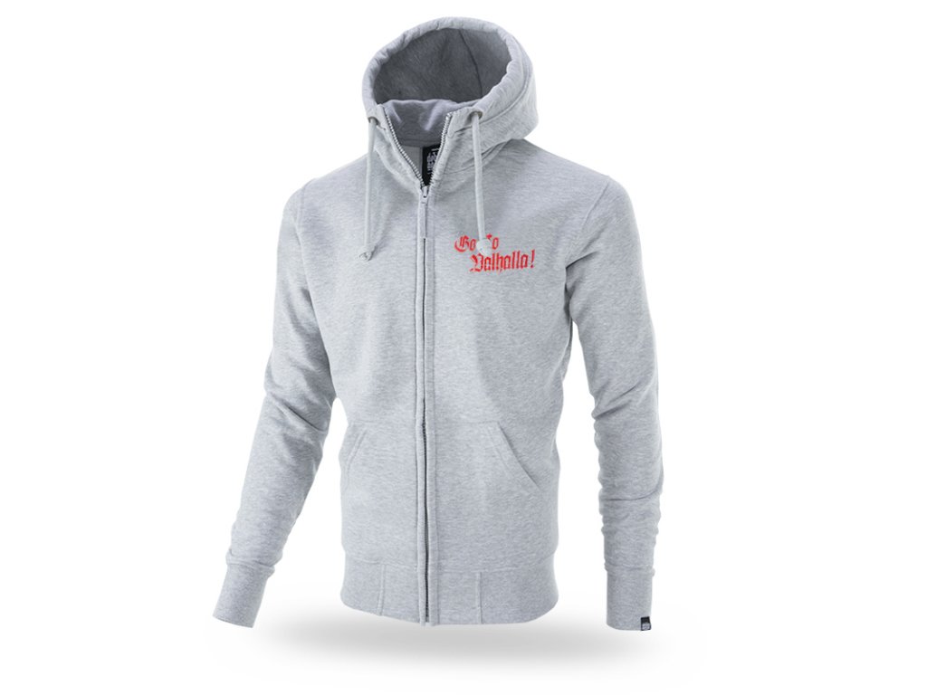 Dvě kapsy jsou na přední straně, na levém rukávu je malá cedulka s logem. Mikina je vyrobená z vysoce kvalitní bavlny. Na zadní straně je velký vzor zobrazující Vikinga. Celek vzoru uzavírá nápis THE STORM GO TO VALHALLA a menší logo značky Doberman’s Agressive. Na levé straně hrudi je nevelký nápis Go to Valhalla.
