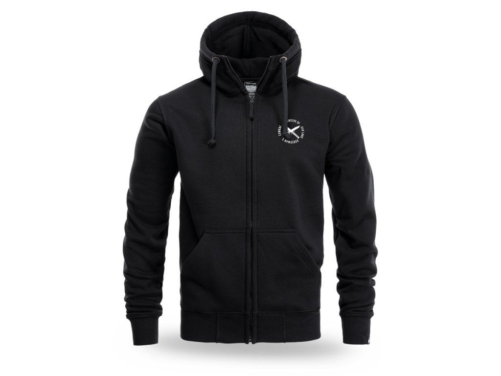Model vybavený nastavitelnou kapucí se šňůrkami a zapínáním na zip po celé délce. Na přední straně se nacházejí praktické klokankové kapsy. Na zádech je velký, výrazný potisk s taktickým motivem a sloganem „Combat – Built for the Frontline“, který zdůrazňuje vojenský charakter kolekce. Na hrudi je umístěn menší emblém navazující na hlavní grafiku. Spodní lem a manžety jsou zakončeny elastickým úpletem pro lepší přizpůsobení a pohodlí při nošení. Model spojuje funkčnost s výrazným stylem inspirovaným vojenskou estetikou.
