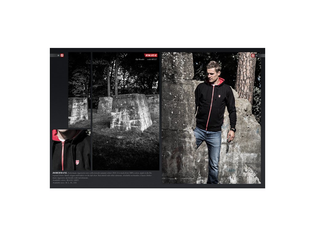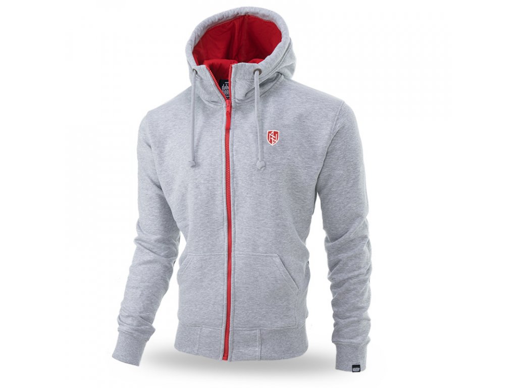 Vnitřek kapuce a zip v červené barvě. Dodatečně červené detaily v podobě dvou nášivek s logem značky. Uvnitř velký štítek se symbolem orla. Kovové prvky a šňůrky u kapuce. Bavlněná látka s gramáži 320g. Na levé straně na prsou červeno-bílá výšivka ve tvaru štítu. Zadní strana hladká. Klasický model řady basic.