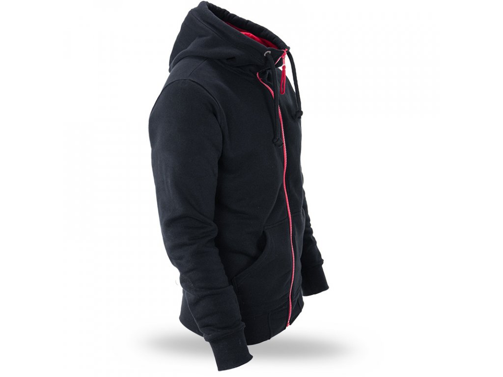 Vnitřek kapuce a zip v červené barvě. Dodatečně červené detaily v podobě dvou nášivek s logem značky. Uvnitř velký štítek se symbolem orla. Kovové prvky a šňůrky u kapuce. Bavlněná látka s gramáži 320g. Na levé straně na prsou červeno-bílá výšivka ve tvaru štítu. Zadní strana hladká. Klasický model řady basic.