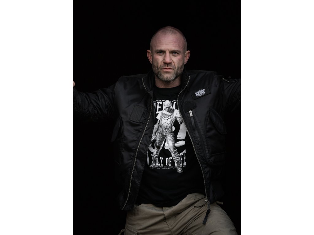Vysoce kvalitní materiál zajišťuje pohodlí při nošení. Model je zdoben velkým potiskem zobrazujícím postavu Skinheads na pozadí grafiky s nápisem „A WAY OF LIFE“. Žebrované manžety a spodní lem podtrhují klasický střih. Model určený pro ty, kteří oceňují odvážné vzory a styl inspirovaný pouličními subkulturami.