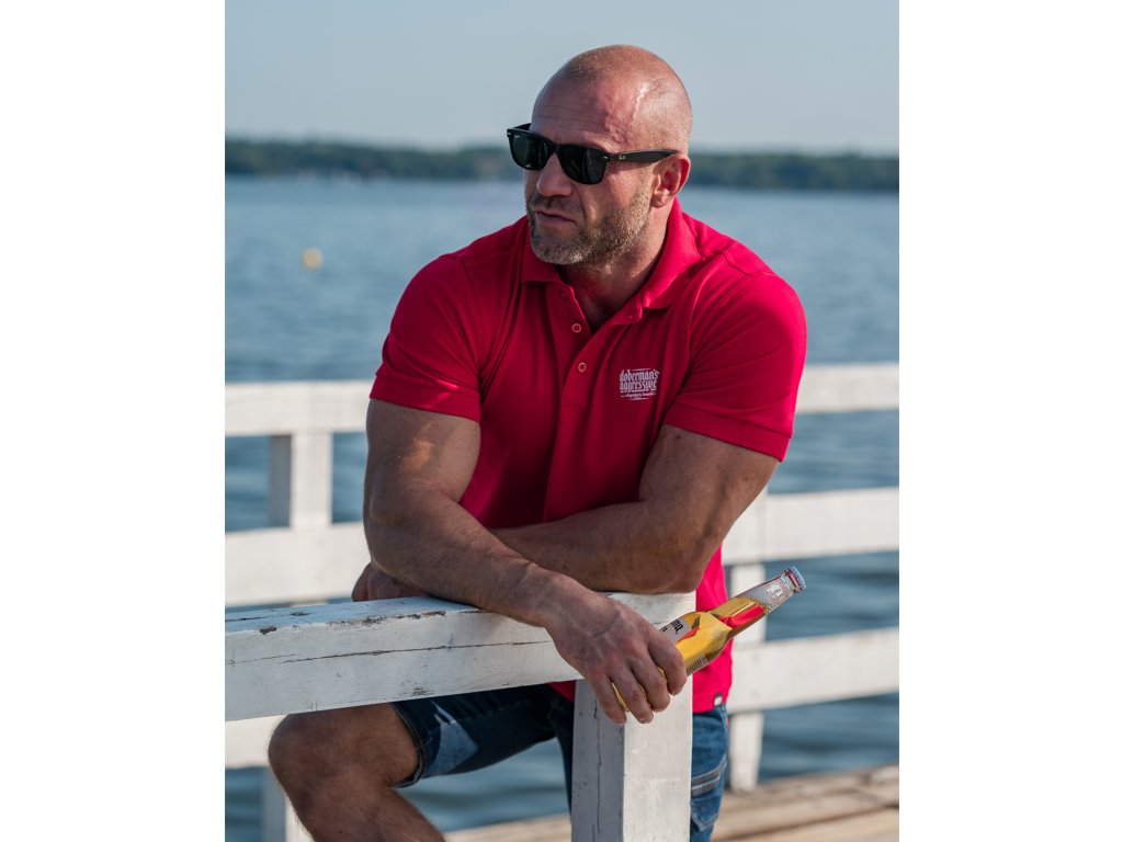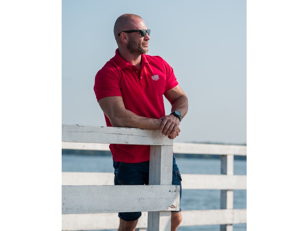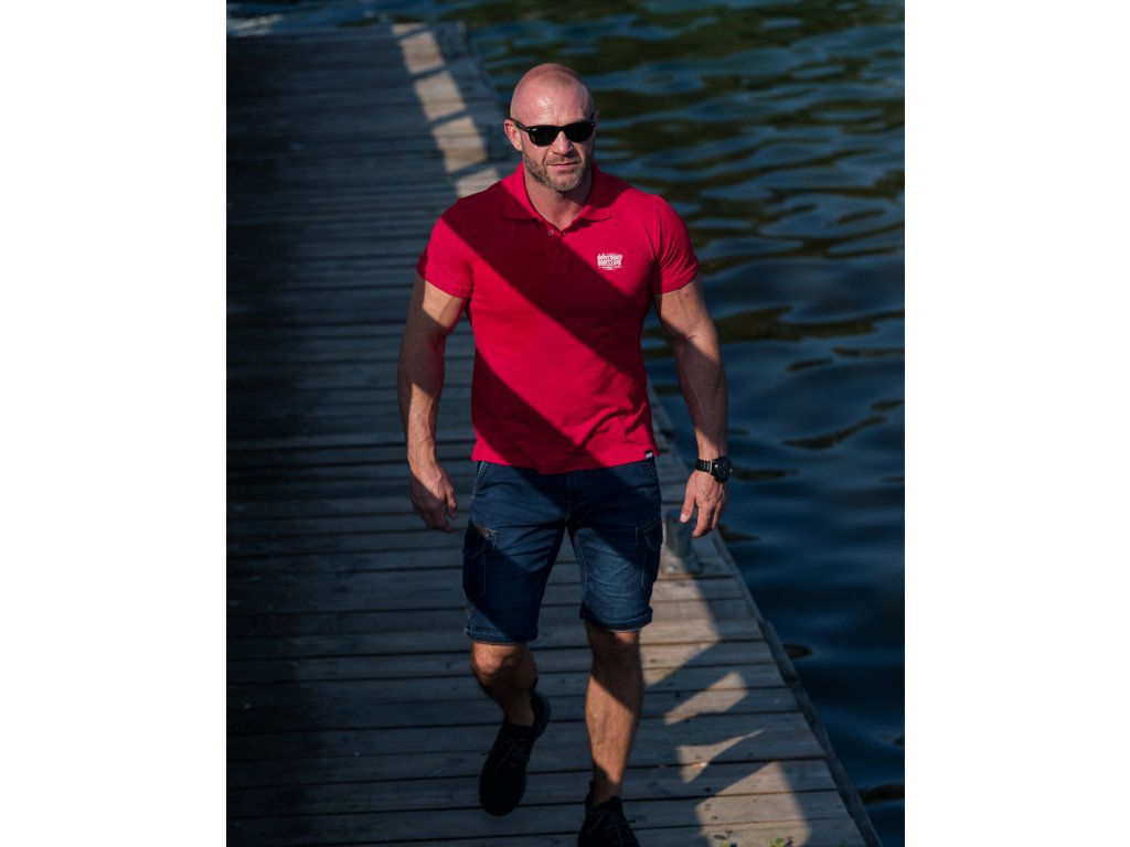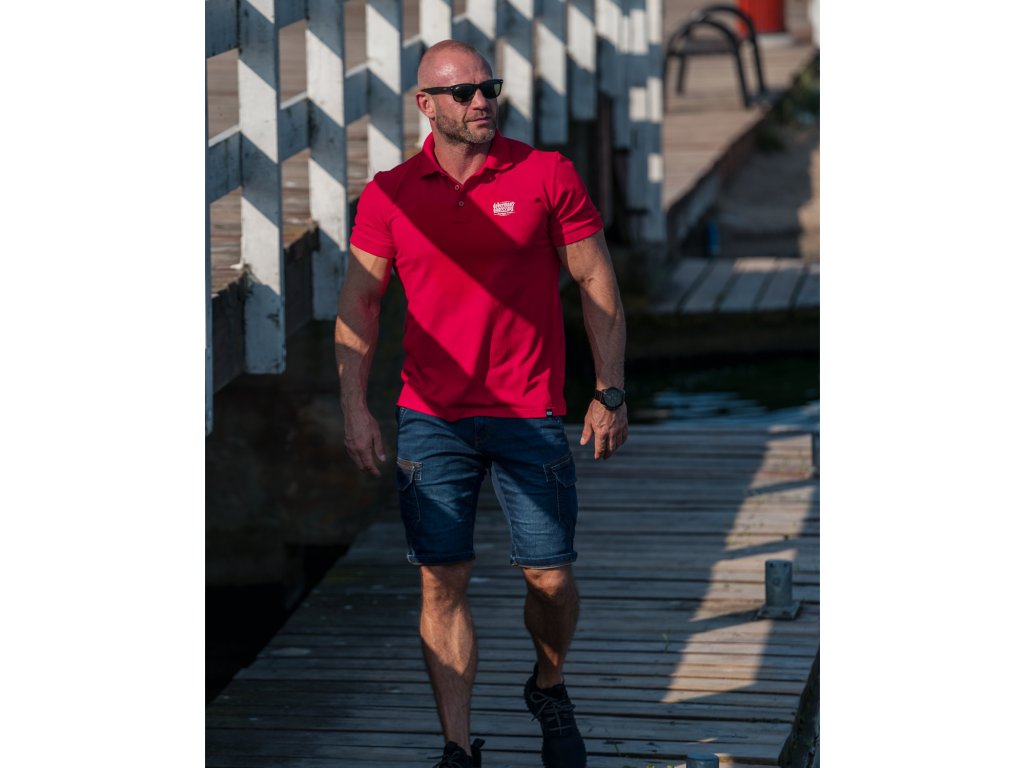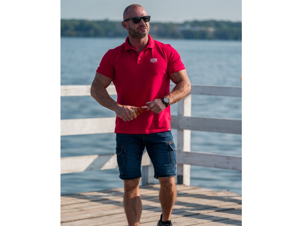 Má límeček se zapínáním na tři knoflíky. Oblečení je vyrobeno z vysoce kvalitní bavlny o hmotnosti 200g. Rukávy jsou zakončené úzkým stahovacím lemem. Na přední straně trička na levé straně hrudníku je malé jednobarevné logo značky Doberman’s.