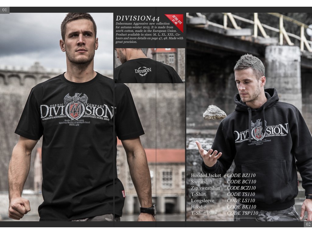 Standardní pánský střih, materiál 100% bavlna, gramáž 200g. Polokošile je u krku zapínána na tři knoflíky, má límeček a na rukávech stahovací lem. Vzadu grafika s motivem ocelového orla, vavřínový věnec a symbol štítu s číslici 44. Na levé straně na prsou nápis Division a vavřínový věnec.