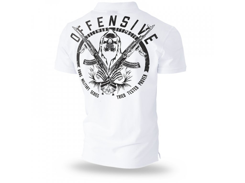 V levém dolním rohu se nachází našitá cedulka s logem značky. Na zádech je velký, jednobarevný potisk s postavou kostry, která drží dva kulomety. Na levé straně hrudi je vytištěná nevelká značka Dobermans Offensive. Vzor založený na kruhu s efektem poničení. Tričko je vyrobeno z vysoce kvalitní bavlny.