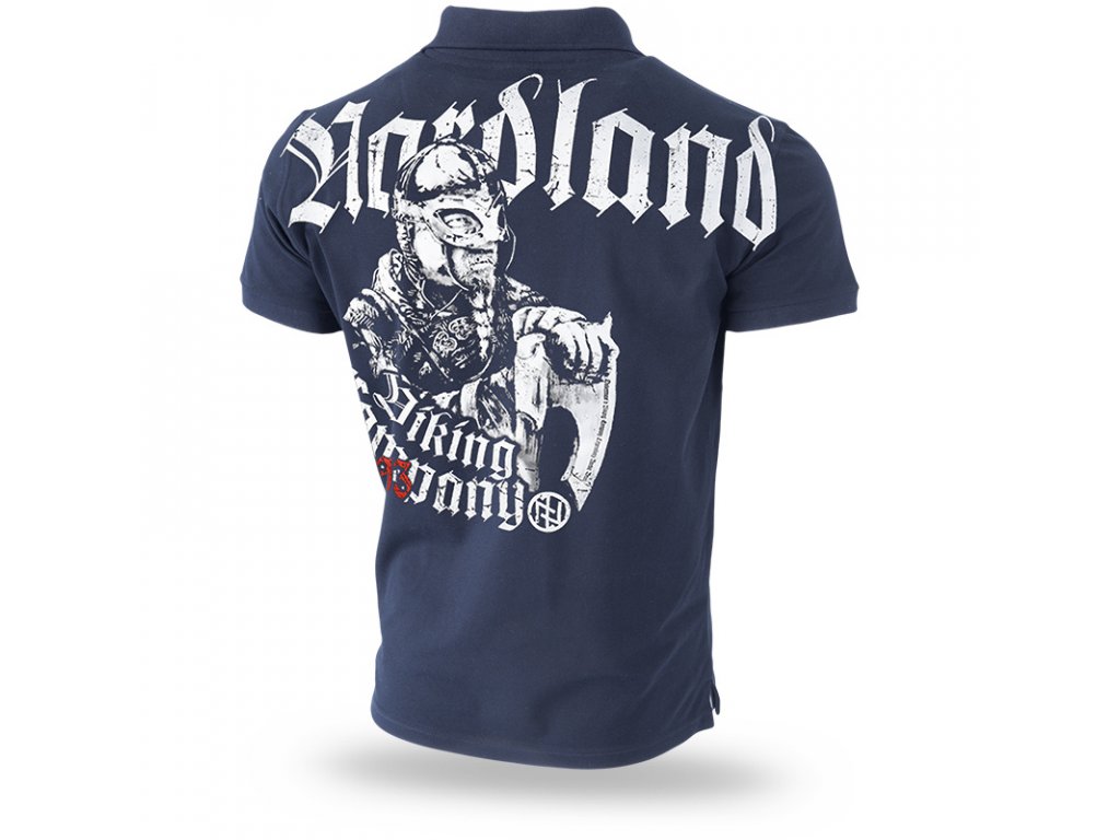 Přední strana zdobená nevelkým gotickým nápisem Nordland a kulatým štítem s runovými symboly, které jsou vytištěny svisle podél levého švu. Na zádech vzor s velkým povrchem. Vzor s efektem popraskání ve skandinávském stylu, který zobrazuje Vikinga opřeného o sekeru. Níže heslo Viking Company v podobě oblouku a datum 793, výše se opakuje nápis Nordland ve větším měřítku.