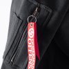 Dolní část mikiny a rukávů je zakončený širokým stahovacím lemem. Záda jsou pokrytá velkým potiskem v podobě loga. Přední část modelu zdobí dva symboly s nápisem DOBERMAN’S AGGRESSIVE, malý na levé straně a velký na pravé. Novinkou je kapsa na pravém rameni se zapínáním na zip, jedinečný charakter jí dodává červená páska. Bavlněné teplákové kalhoty se dvěma kapsami, které mají elastický stahovací lem a šňůrky v pase. Náš model je doplněn dvěma kapsami na zadní straně a také vepředu je kapsa, která dokonale ladí s kapsou na rukávu mikiny díky červené pásce. Na pravé nohavici se nachází velký nápis, který představuje naše logo a malá nášivka se stejným nápisem.
