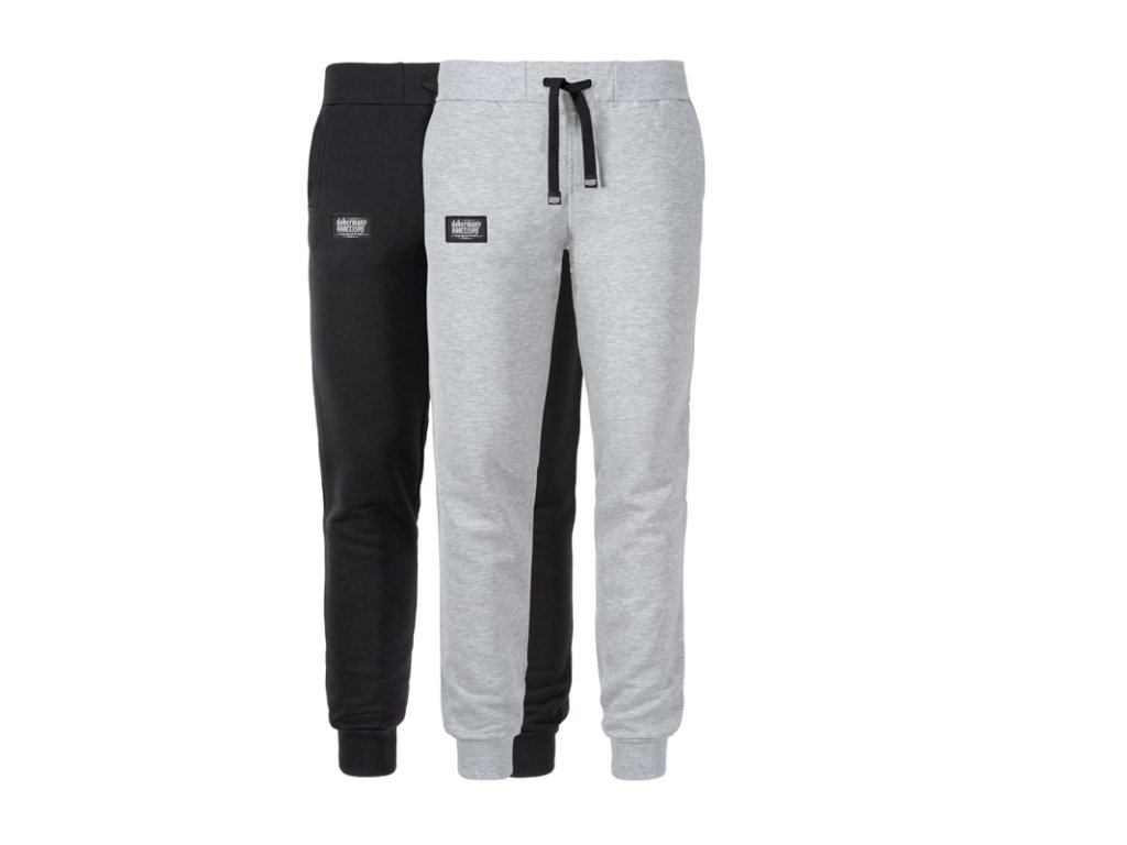 Klasické tepláky s rovným střihem, s žebrovanými manžetami na nohavicích a nastavitelným pasem.