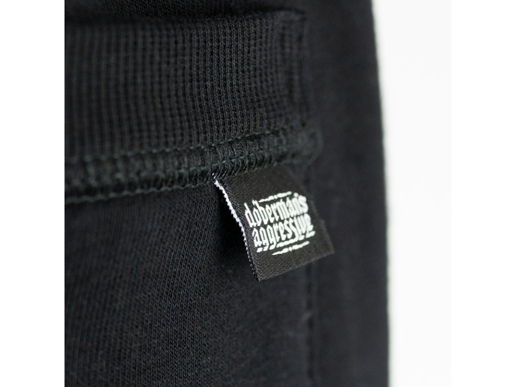 Kalhoty jsou vyrobené z vysoce kvalitní bavlny, která zaručuje trvalé pohodlí nošení. Tepláky mají šňůrky, které umožňují nastavení v pase, šňůrky jsou ozdobené všitými cedulkami s logem Doberman’s Aggresive.V horní části na pravé straně je umístěný gumový potisk s logem značky.Na zadní straně kalhot se nachází další kapsa ozdobená cedulkou s logem.