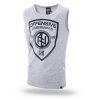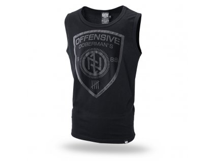 Na přední straně se nachází velký charakteristický potisk v podobě štítu s kruhem, runovými znaky a nápisem Doberman’s Offensive. Potisk je vytvořený metodou, která umožňuje získat vypouklý vzor. Díky tomu vypadá tílko boxer velice působivě.