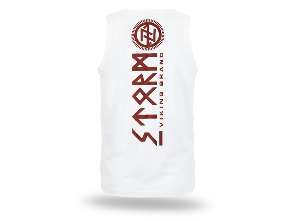 V dolní části tílka je našitá malá cedulka s logem značky. Na zádech je nápis STORM VIKING BRAND a také severský symbol provedený metodou vypouklého potisku. Na přední straně tílka na hrudi je menší vzor, který navazuje na hlavní motiv.