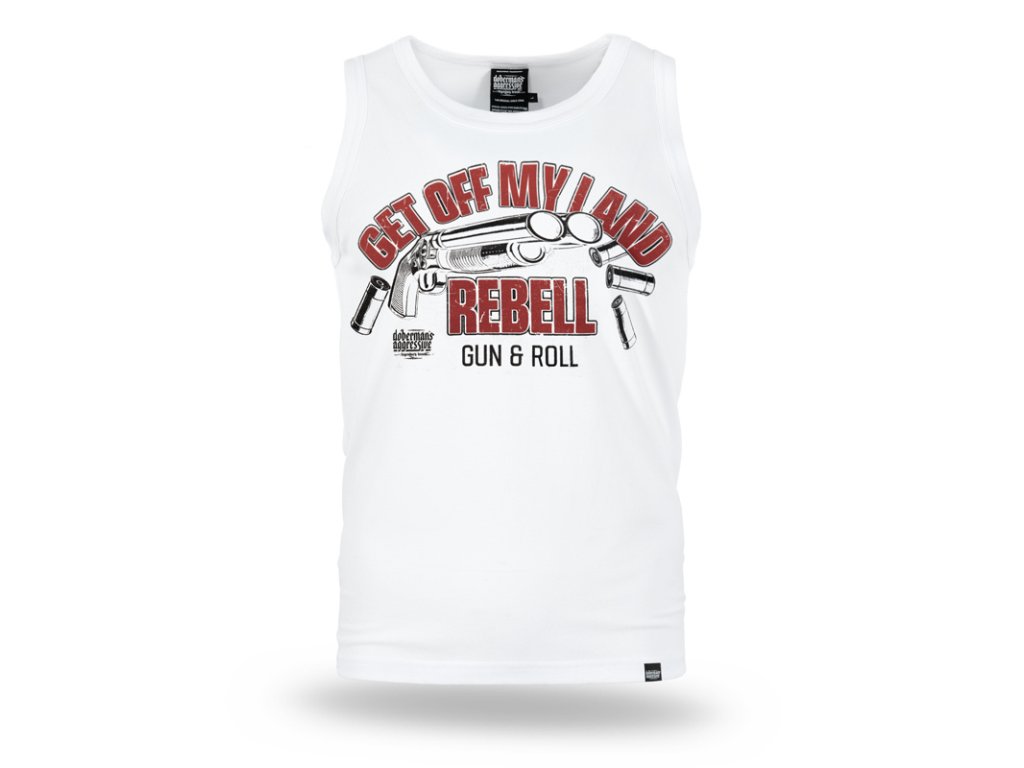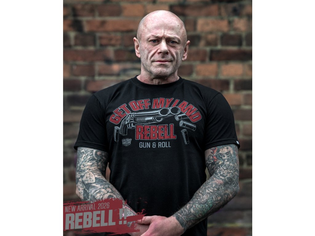 Vyrobeno z vysoce kvalitní bavlny, která zajišťuje pohodlí a volnost pohybu. Na přední straně se nachází výrazný potisk s motivem zbraně a nápisem „Get Off My Land REBELL Gun & Roll“, který dodává modelu silný a charakteristický styl. Zadní strana zůstává hladká, bez dalších ozdob. Model ideální na teplejší dny nebo jako součást vrstveného outfitu pro ty, kteří oceňují odvážný design.